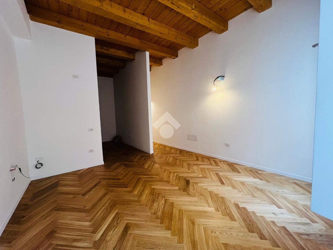 I pavimenti in parquet e i soffitti alti con travi in legno a vista conferiscono calore e carattere agli spazi.
